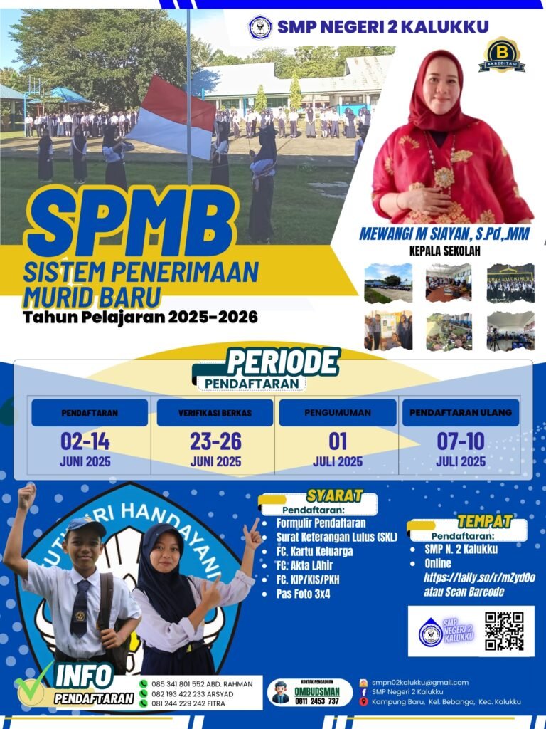 Puji syukur kita panjatkan ke hadirat Allah SWT atas limpahan rahmat dan karunia-Nya. Selamat datang di website resmi SMP Negeri 2 Kalukku.